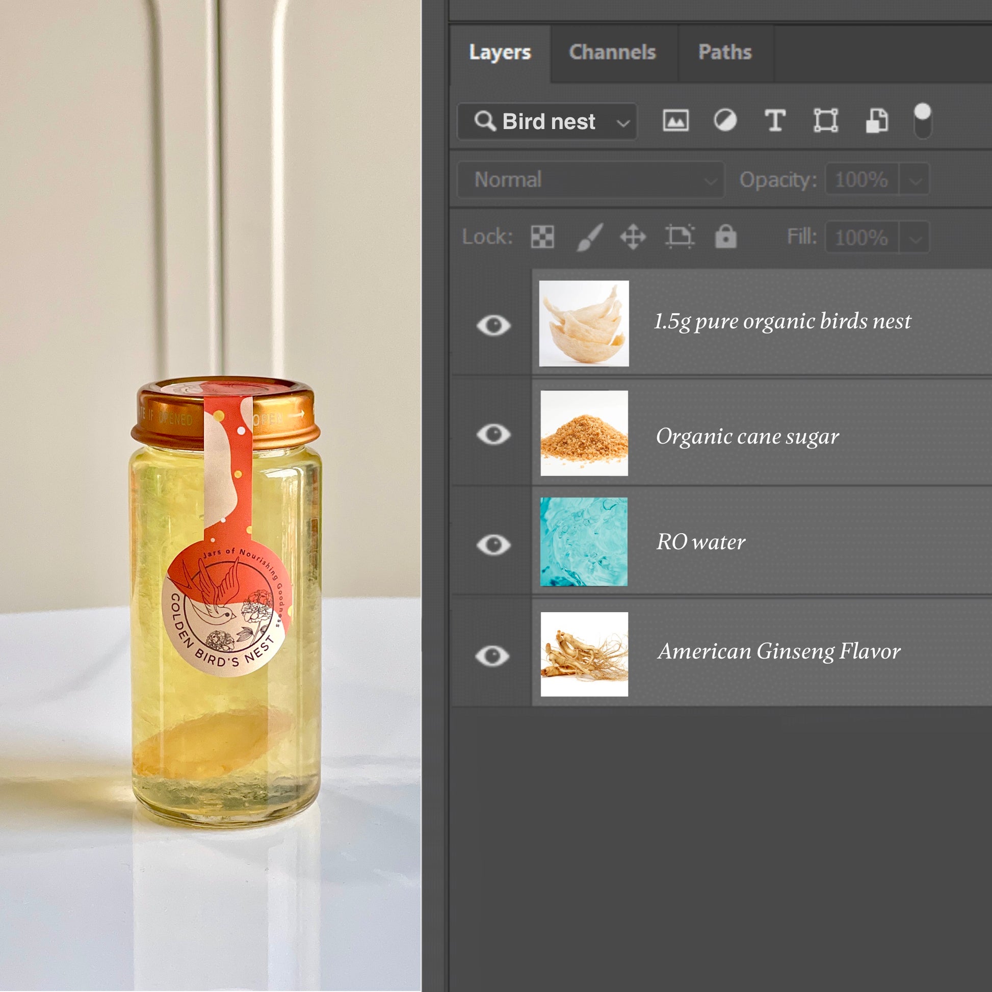 Golden Bird's Nest [Beauty of Six - Ginseng] bottled bird's nest drink uses only three all natural ingredients: